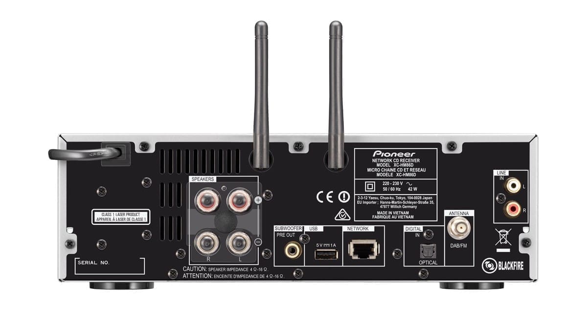 На передней панели расположен OLED-дисплей и необходимые элементы управления. Мощность составляет 60 Вт x 2 канала (6 Ом) или 4x 30 Вт для колонок A / B с индивидуальной настройкой громкости для каждой пары. Можно использовать пульт от телевизора для управления различными параметрами. Поддерживает форматы WMA и MP3.