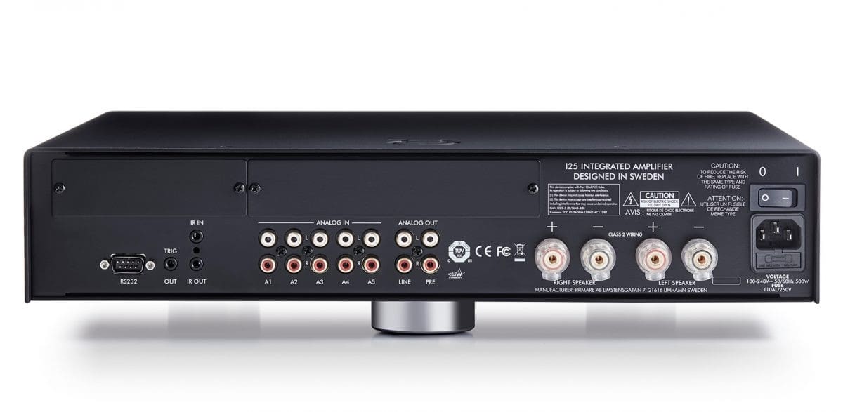 Корпус I25 выполнен из толстой стали, которая обеспечивает прочность и надежность, прекрасно экранирует устройство и эффективно поглощает вибрации внешних источников. Для уменьшения уровня искажений секция предусиления расположена в отдалении от секции усилителя мощности и питается от отдельного блока питания.