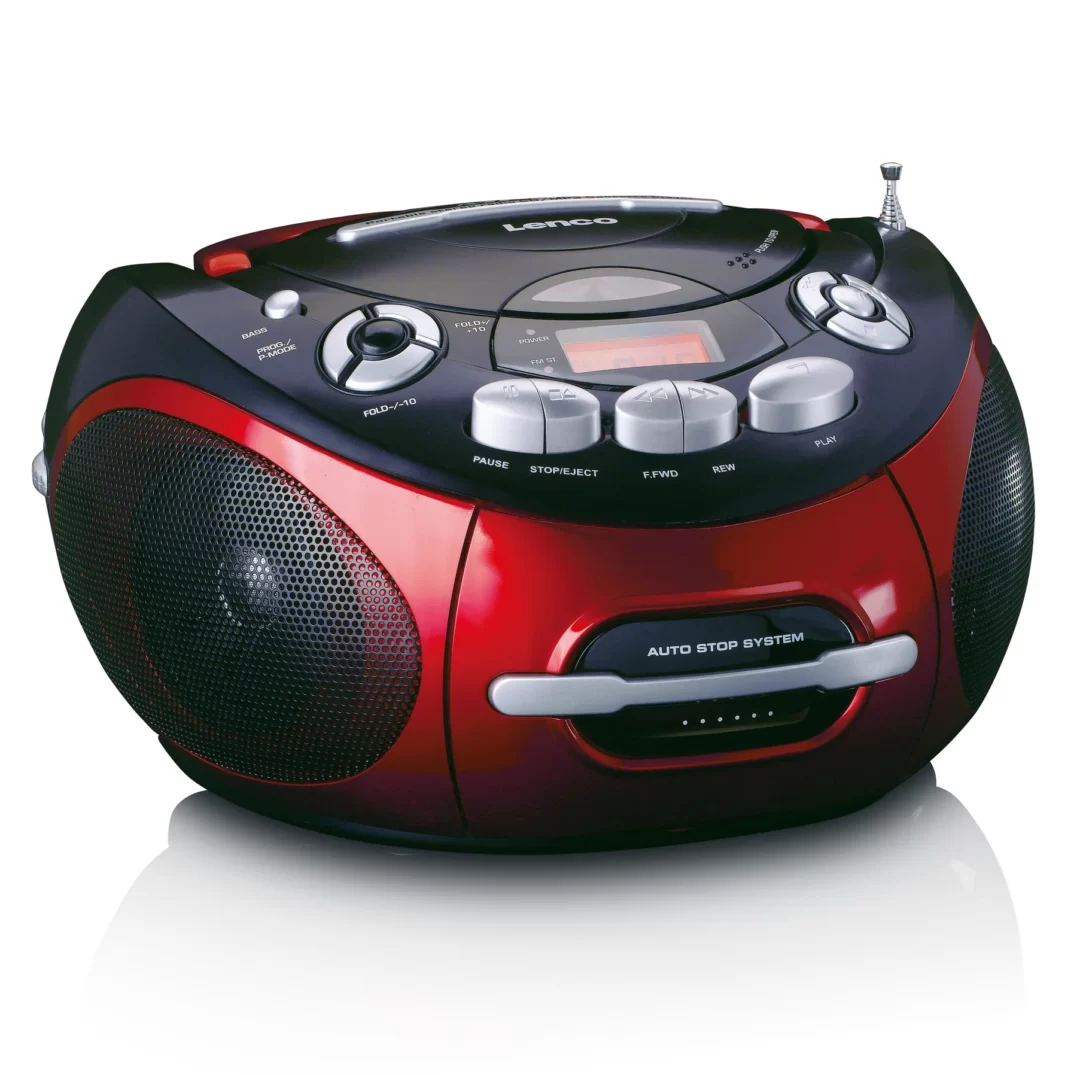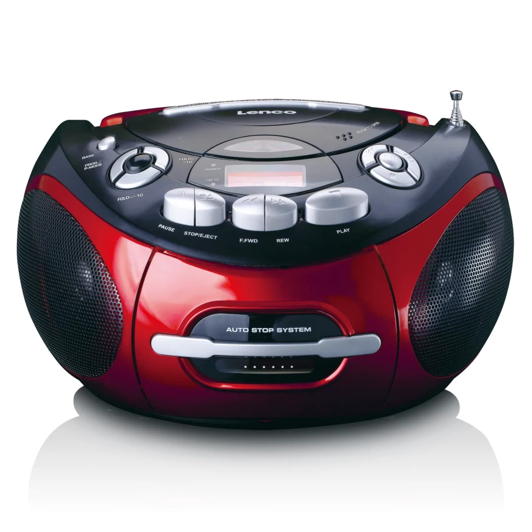 Lenco SCD — 430RD имеет различные параметры воспроизведения. Он принимает AM/FM-радио, которое вы можете слушать с большой четкостью благодаря телескопической антенне. В дополнение к радио вы также можете воспроизводить свою собственную музыку на кассетном проигрывателе с функцией автоматической остановки или на проигрывателе компакт-дисков с функциями CD-R/RW и MP3. Lenco SCD — 430RD имеет программируемую память на 20 дорожек компакт-диска.