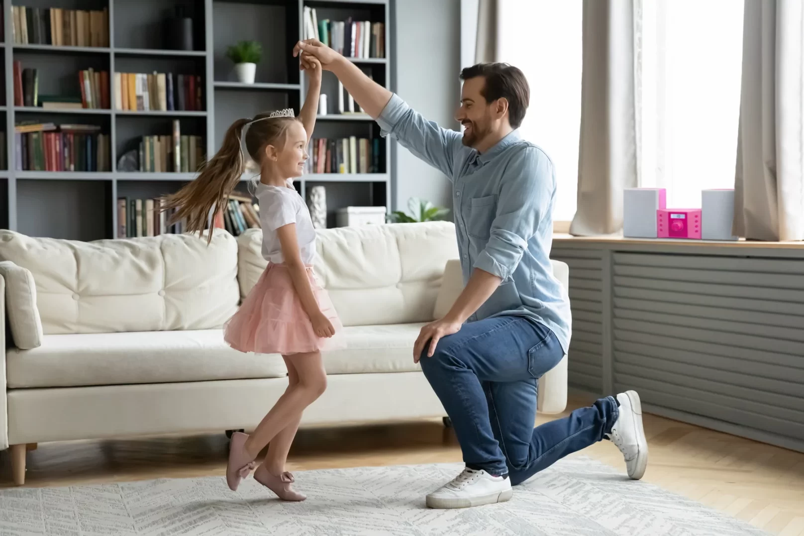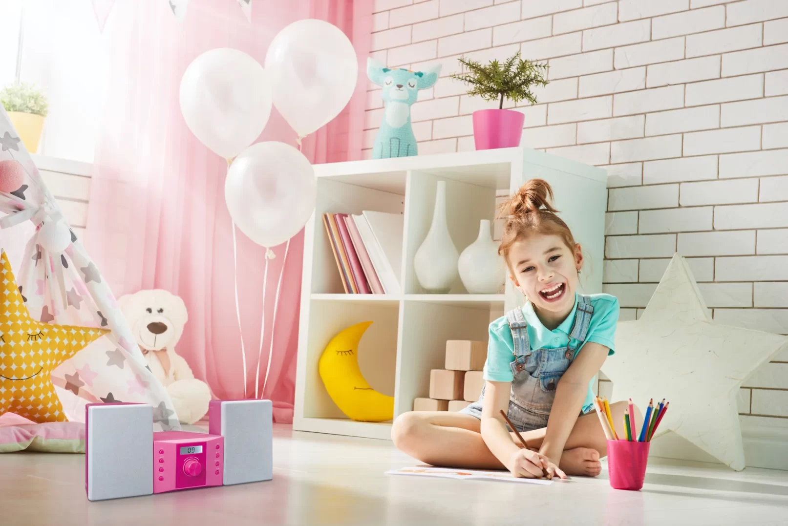 У вас есть собственные плейлисты на смартфоне? Их можно воспроизводить через AUX-вход с аудиокабелем. Со всеми возможностями воспроизведения это идеальный мини-набор для детской.