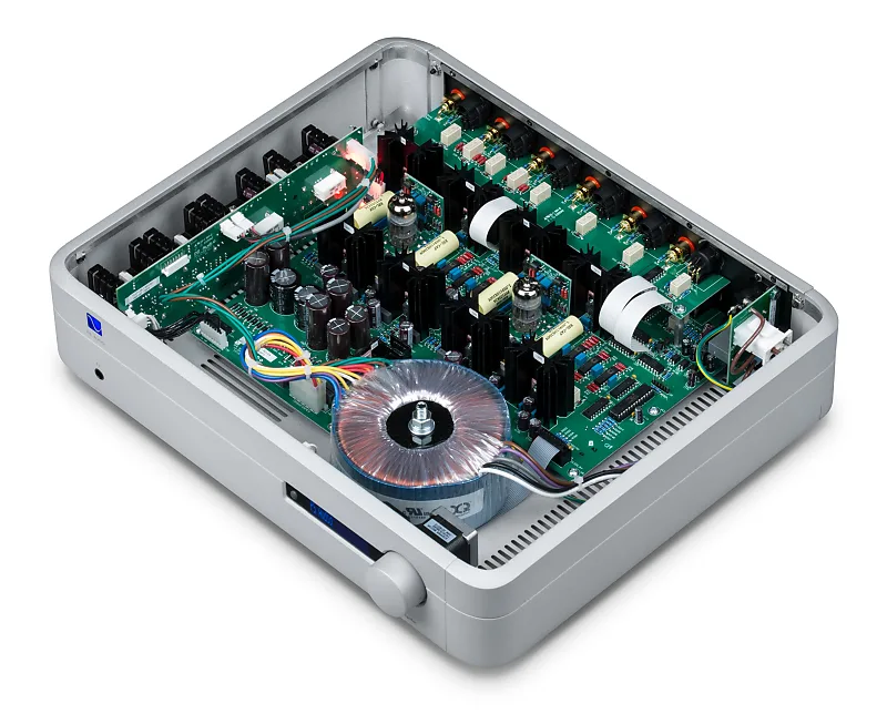 Предусилитель BHK Signature PreAmp имеет гибридную схему с входным каскадом на малосигнальных лампах 12AU7 без ООС и выходным каскадом на полевых транзисторах MOSFET. Ток покоя ламп подстраивается автоматически, так что при желании пользователь может попробовать другие типы двойных триодов. Уникальным элементом схемы является дискретный регулятор уровня, в котором переключение резисторов происходит одновременно с тонкой регулировкой коэффициента усиления входного каскада.Предусилитель имеет пять линейных входов (XLR или RCA по выбору, но не одновременно) и послужит хорошим партнером для усилителей мощности PS Audio BHK Signature.