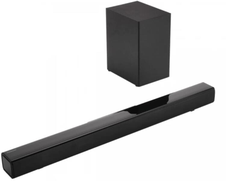 HTB150 — это тонкая стильная звуковая панель с беспроводным сабвуфером, которая обеспечивает впечатляющий стереозвук мощностью 100 Вт с мощными басами. Основной блок имеет глянцево-черный корпус и элегантную металлическую решетку динамика, которая дополнит любой интерьер. Лучше всего то, что он легко подключается к телевизору через HDMI или к телефону через Bluetooth®.